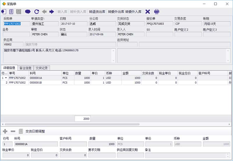 | 1 | 采購(gòu)單管理 | PO,通用采購(gòu)單管理,含交貨計(jì)劃,實(shí)際交貨記錄,交貨余量記錄,交貨狀態(tài)記錄 |