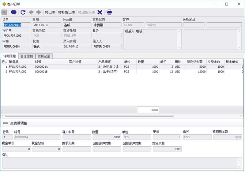 | 2 | 客戶訂單管理 | SO-買斷模式,含交貨計(jì)劃,實(shí)際交貨記錄,交貨余量記錄,交貨狀態(tài)記錄 |